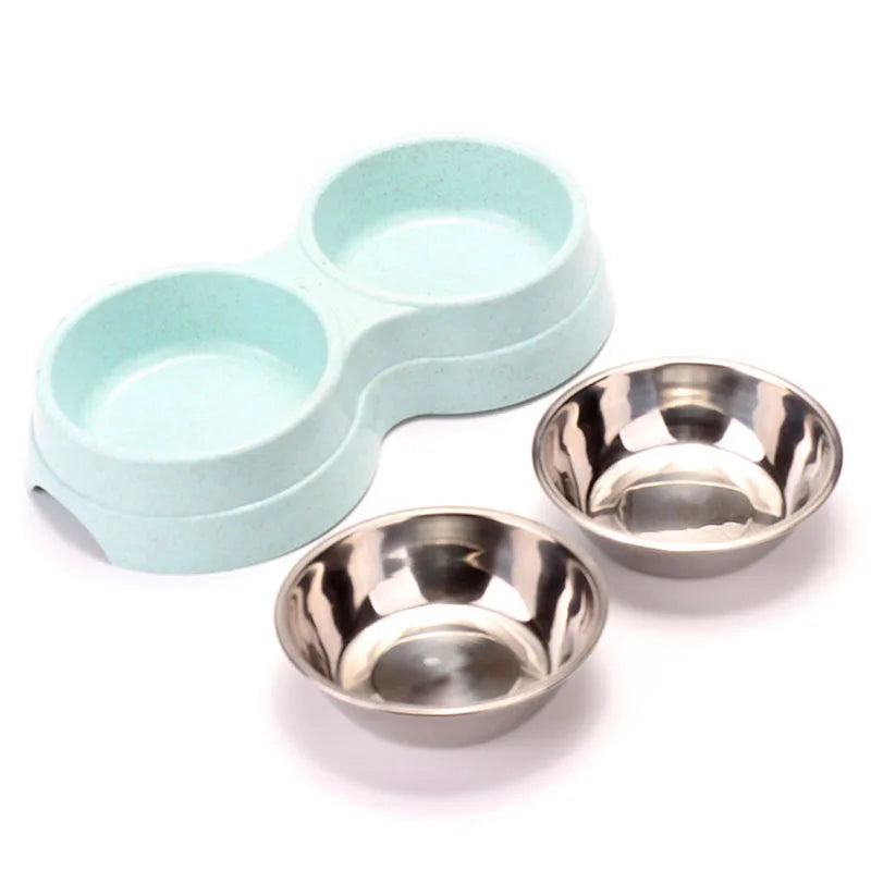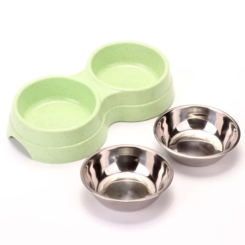 Dual bowls design: Conveniently serve both food and water in one space-saving set